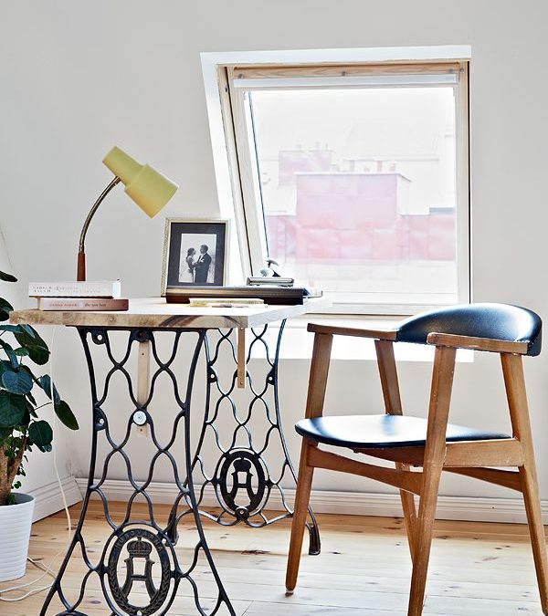 A small room should not be a deterrent when trying to fit in a desk. In fact, that old shelf you have could be upcycled into a shelf-based desk. Simply dismember the shelf and slide a longer board of the same kind of wood on the middle shelf, and BAM! Meet your new shelf supported desk.